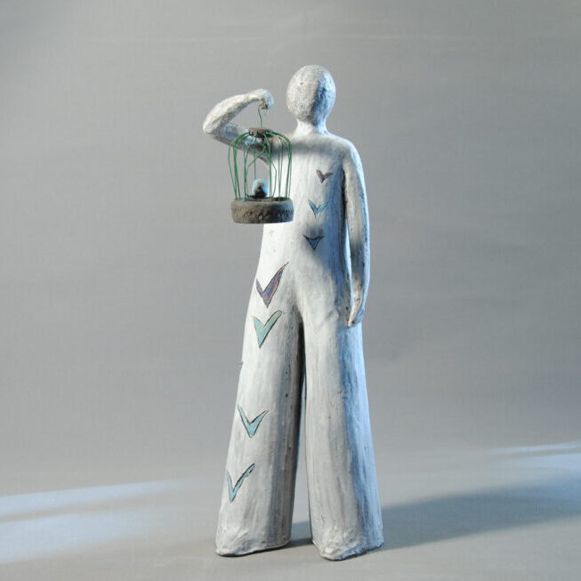 Les silencieux Les Silencieux sont des statuettes modelées en grès de 30 cm de hauteur en moyenne. Elles évoquent toutes un moment de la vie quotidienne en lien avec la famille, l’amour, l’enfantement, la recherche de soi, le doute…Chacune porte son histoire.
